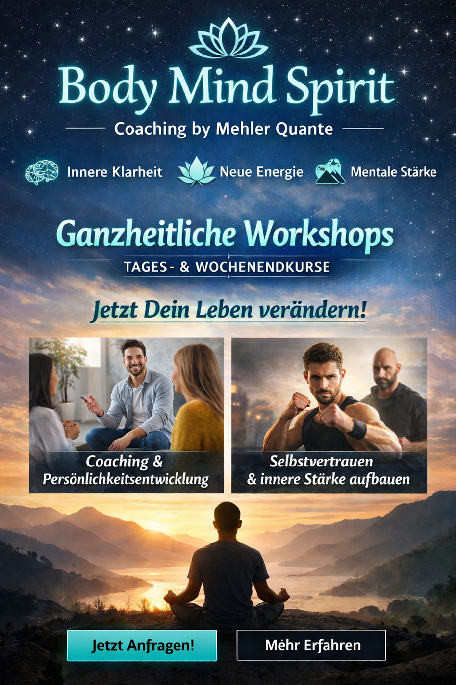 In einer Welt voller Druck, Tempo und Erwartungen verlieren viele Menschen die Verbindung zu sich selbst. Body Mind Spirit Coaching setzt genau hier an: Es verbindet Coaching, mentale Neuausrichtung und praktische Stabilisierungsstrategien für Alltag, Beruf und persönliche Entwicklung.
